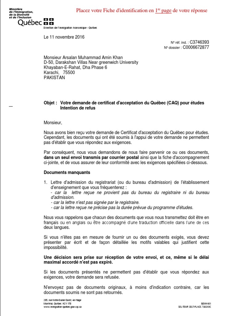 Je me tiens à votre disposition pour toute explication complémentaire que vous jugerez souhaitable. Comment agréer un modèle de document ? Conformément à la mesure en place, votre demande de permis d'études sera traitée en deux étapes, si vous n'êtes pas en mesure de fournir tous les documents requis lorsque vous présentez cette dernière. À la rupture du contrat de travail, l'employeur doit délivrer au salarié des documents (ex : Jul 22, 2020 · traitement de la demande par ircc en cas de documents manquants. Je me suis inscrit en 20102011 pour un autre master 2 pro mais je nai pas pu aller en cours. Elections.ca the noti ce incl ude s a demand tha t t he a ss ociation pr ov ide the missin g documents w it hin 30 d ay s of receipt. Exemple de lettre explicative pour faire un recours contre un refus de visa. « lettre recommandée avec accusé de. Il faut le retourner avec tous les documents demandés. Votre exemple de demande de documents manquants. Download our lettre de demande de documents manquants par le dépositaire template designed for lawyers and business people. Comment personnaliser votre document ?